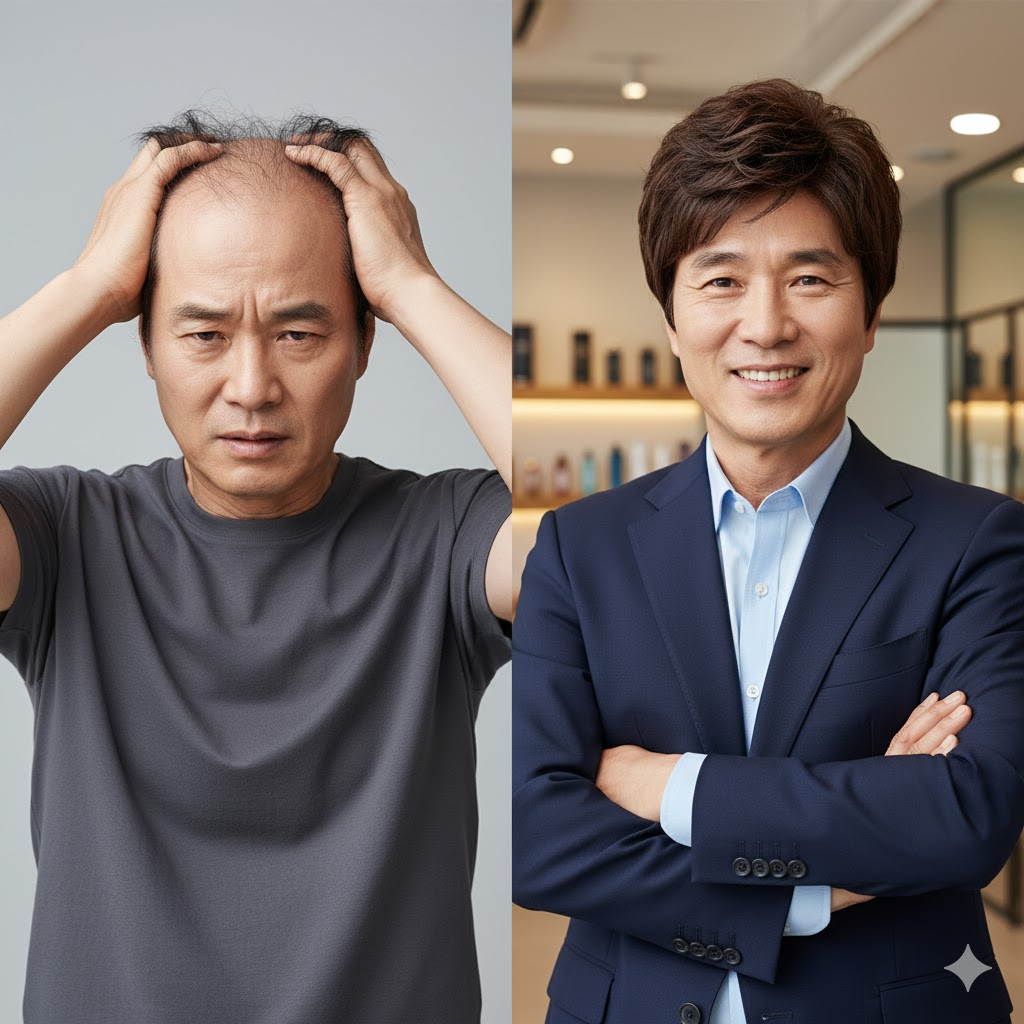 - ✅ 가발은 단순 커버를 넘어선 적극적인 스타일링 도구입니다. 중년의 자신감과 사회적 활력을 높여줍니다.