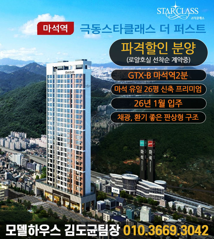 | GTX 마석역 바로 앞! 26평 아파트 파격 할인 분양가 공개 (ft. 무이자 혜택) (20) | 2025.11.11 |