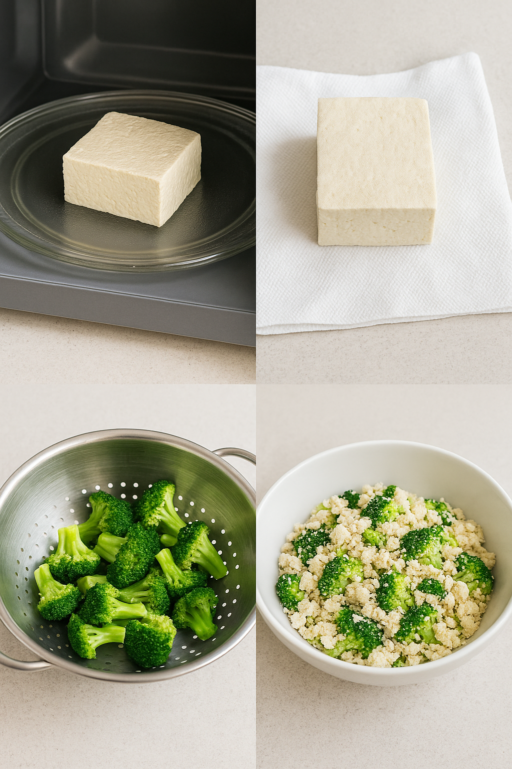 - 양념과 무치기: 으깬 두부에 미리 데쳐둔 브로콜리와 모든 양념(간 마늘, 국간장, 참기름, 깨소금)을 넣어줍니다.